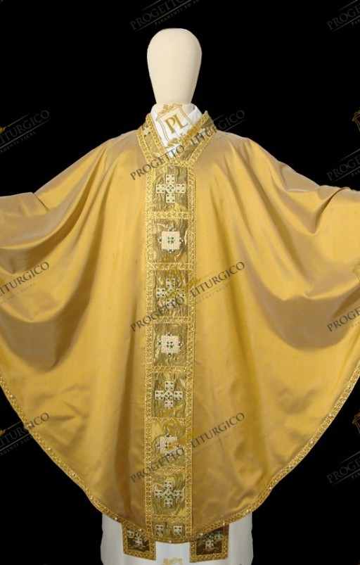 It is all in shades of gold this gothic golden chasuble, made of a refined shantung silk fabric and lined with satin, also golden.
