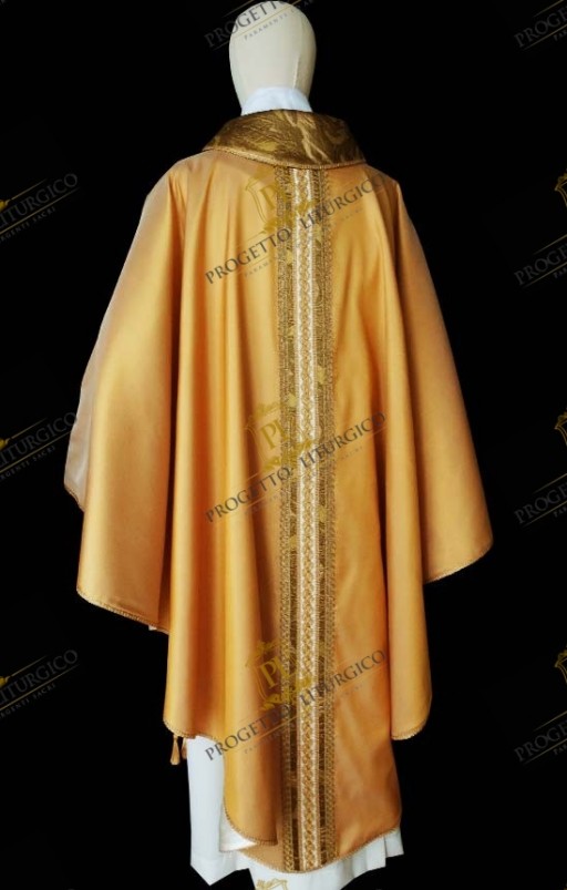 This precious golden chasuble finds its best use in the celebration of religious holidays, such as Holy Christmas or Holy Easter, precisely because of the rich golden color.
