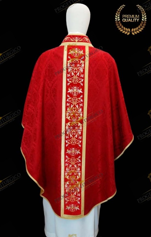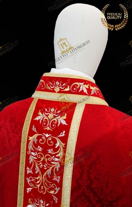The red Borromean chasuble that we present here is truly a very precious priestly vestment. Starting from the shape, ending with the decoration, the red Borromean chasuble has various characteristics that make it a unique vestment.