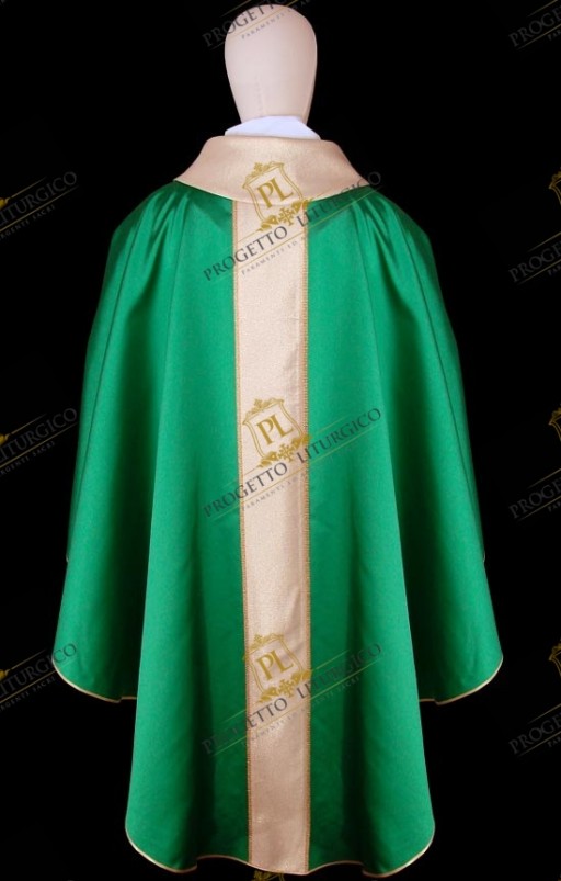 Questa casula verde, dunque, con la sua semplicità ed eleganza, data dalla preziosità dei materiali utilizzati e alla maestria delle mani che l'hanno confezionata, contribuisce a rendere onore alla celebrazioni liturgiche anche durante il tempo ordinario