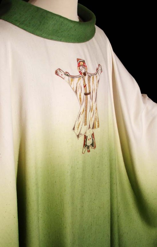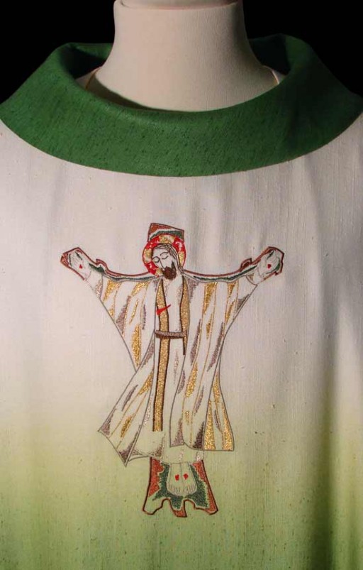E così è nata questa casula verde, dalla foggia ampia, moderna e dal collo tondo.