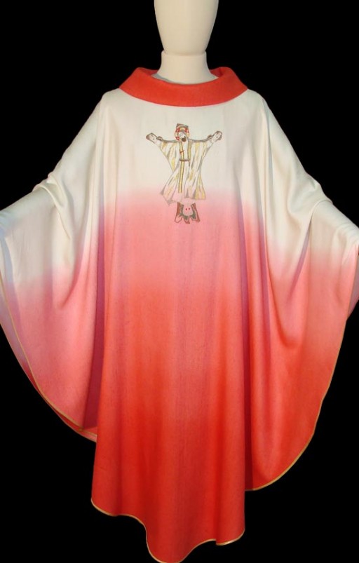 Degna di nota è anche la stola sacerdotale abbinata alla casula rossa, realizzata nello stesso tessuto e foderata con raso dorato. La stola porta all'estremità dei due lembi e al collo il ricamo di una croce.