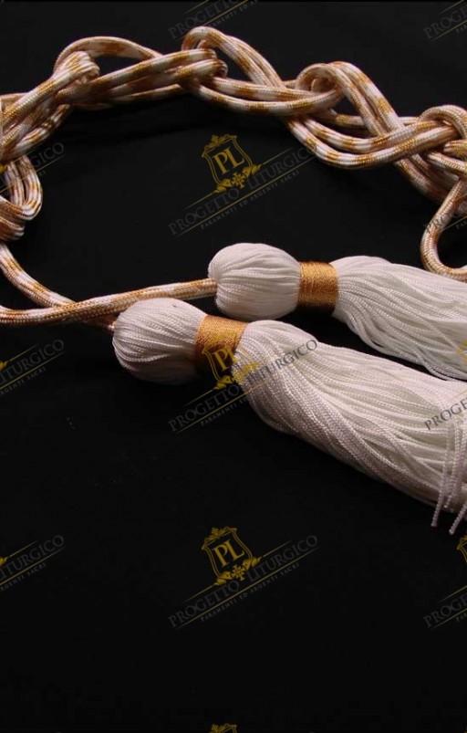 Il cingolo per camice bianco e oro è il cingolo per camice della festa. Indossato al di sotto della casula bianca per stringere alla vita il camice, il cingoloper camice bianco completa la vestizione del sacerdote.