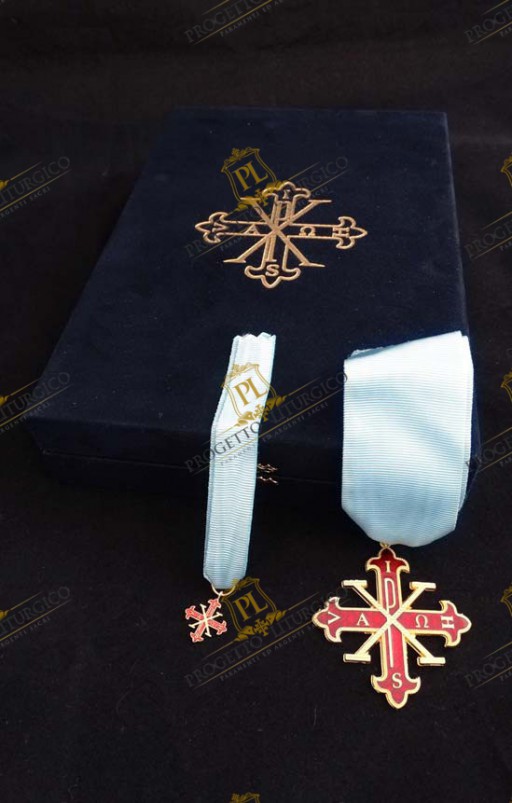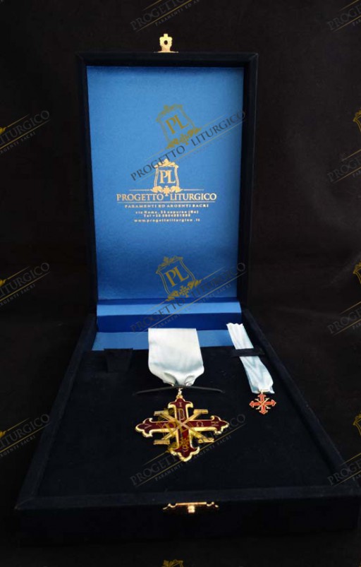 Le insegne per Cavaliere di Merito dell'Ordine Costantiniano di San Giorgio che qui presentiamo sono realizzate in ARGENTO 925 in bagno d'oro e sono conformi alle prescrizioni del Sacro Militare Ordine.