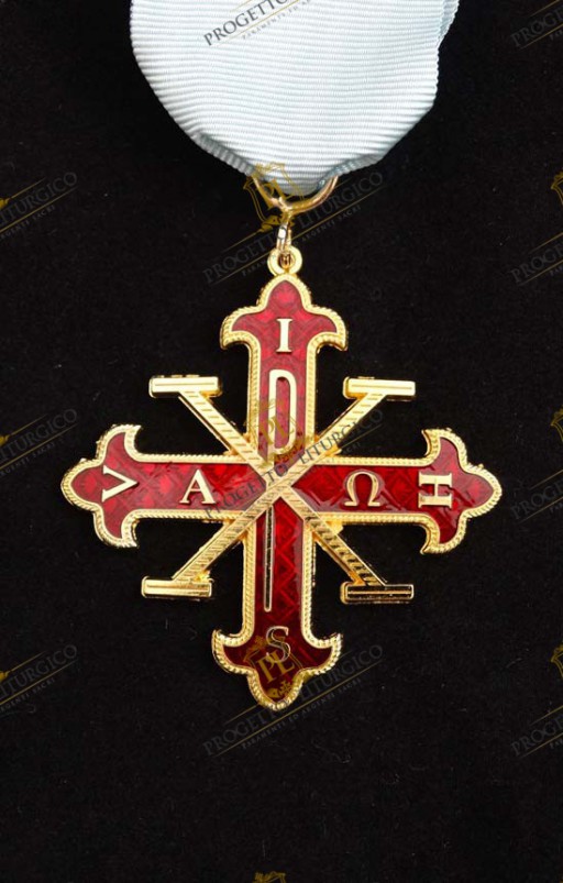 Le insegne per Cavaliere di Merito dell'Ordine Costantiniano di San Giorgio che qui presentiamo sono realizzate in ARGENTO 925 in bagno d'oro e sono conformi alle prescrizioni del Sacro Militare Ordine.