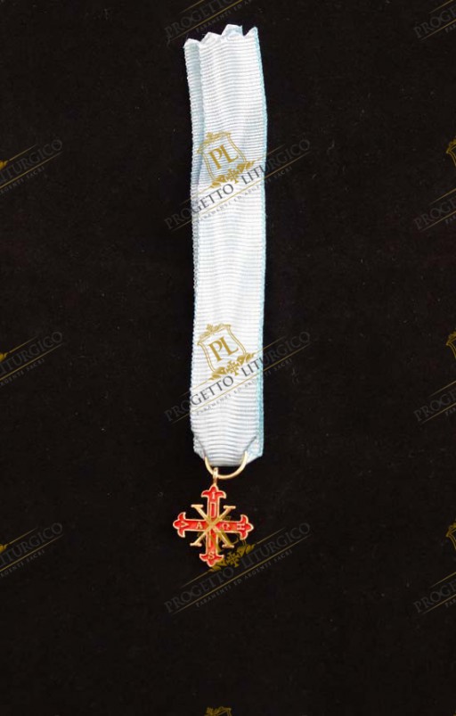 L'intero set è composto da quattro pezzi: la croce gigliata smaltata di rosso sormontata da un nastro di seta celeste con effetto moiré; la croce di gala piccola dell'ordine; la rosetta in seta da occhiello per abiti civili e il nastrino per divisa con la croce dell'Ordine.