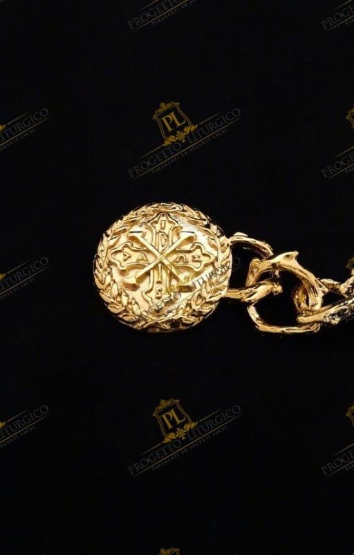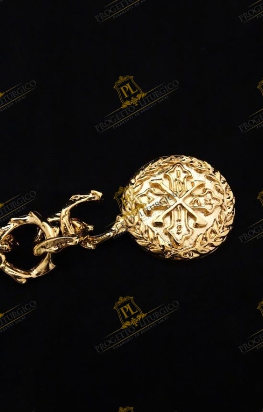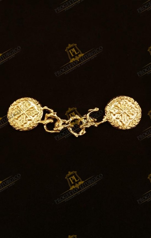 The metallic frogs for the cape of the Constantinian Order of Saint George are made of gold-plated metal.