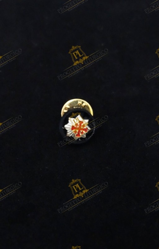 The rosettes sold are usually the economical type. In this Gift set for Holy Sepulcher Knight, you will have a silver rosettehandmade on silk and compliant with the rules of the Statute.