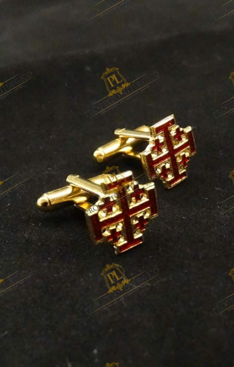 This precious Silver Cufflinks Holy Sepulchre of Jerusalem are handmade. The Cross of Godfrey of Bouillon is enamelled in red, as required by the Order\'s prescriptions.