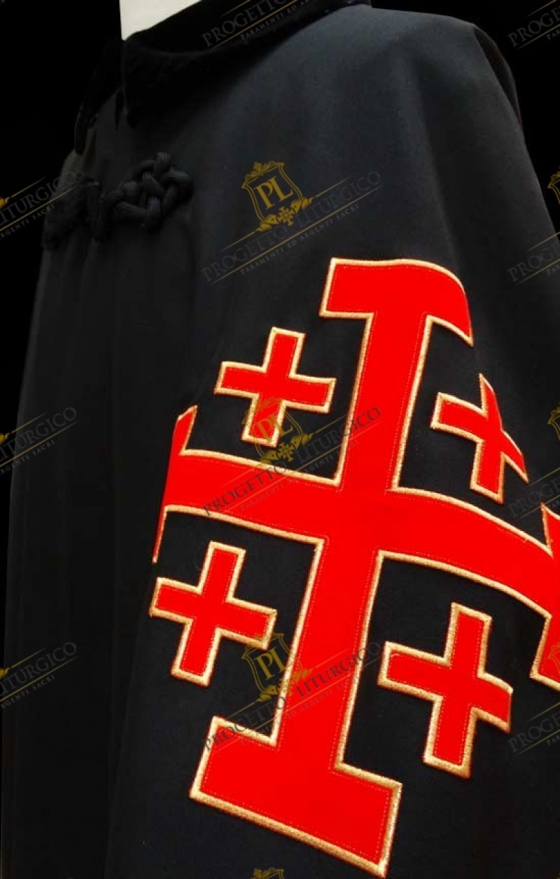Our Holy Sepulchre Lady\'s Cape is sewn on the bottom and on every internal seam, ensuring a long duration in time, without appearing shabby after a few months of use. The neck is made of silk velvet and built like a man\'s coat.