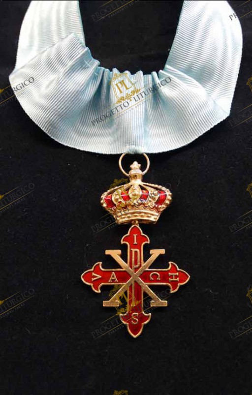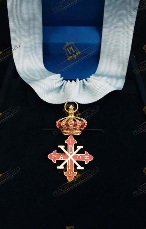 Le insegne per Cavaliere di Merito dell'Ordine Costantiniano di San Giorgio che qui presentiamo sono realizzate in ARGENTO 925 in bagno d'oro e sono conformi alle prescrizioni del Sacro Militare Ordine.