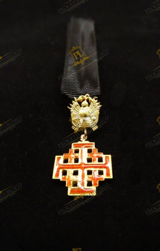 This Miniature Insignia for Knight Holy Sepulchre Jerusalem (KCHS) is made in Italy using the traditional sacred gold working techniques in the Progetto Liturgico workshops.