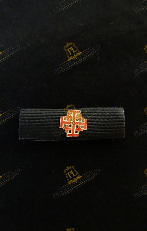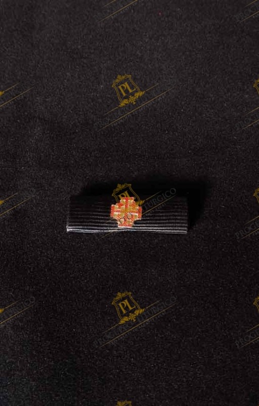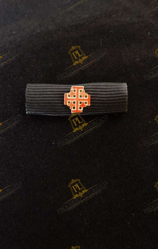 The Knight Commander Holy Sepulchre (KCHS) ribbon for Military Uniform consists of a 925 Silver small Cross of Godfrey of Bouillon enamelled in red placed on a black watered silk ribbon.