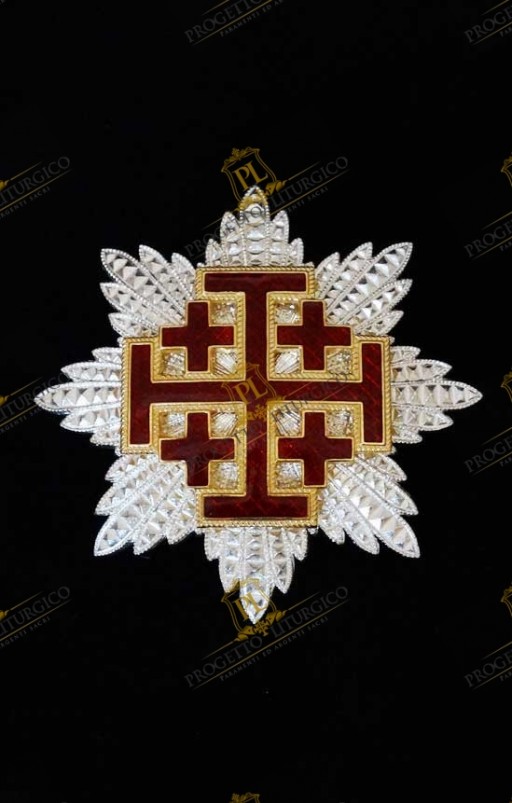 The Star for Knight Grand Cross Insignia Holy Sepulchre of Jerusalem (KGCHS) is made in Italy using the traditional sacred gold working techniques in the Progetto Liturgico workshops