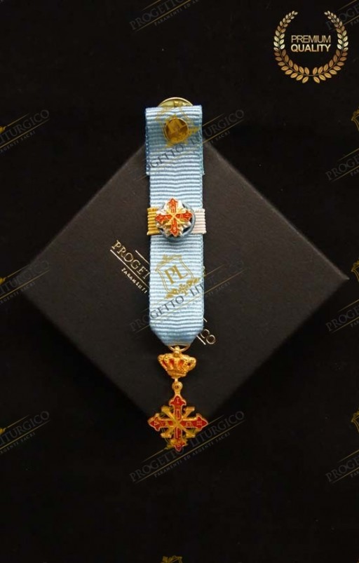 This miniature Insignia for Grand Officer of Merit Sacred Military Constantinian Order of Saint George - Franco - Napolitan Branch complies with the requirements of the Royal Decree of 2019.