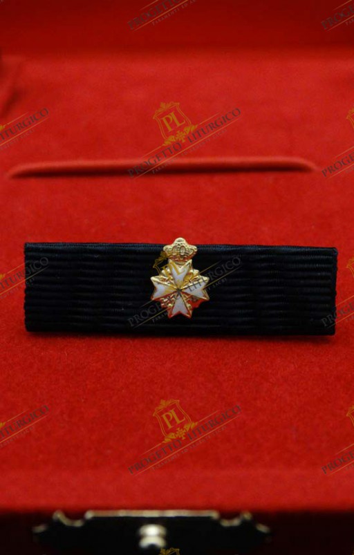 The ribbon for Knight of Honour and Devotion of Order of Malta is composed by the octagonal cross surmounted by the Crown, in the centre of a black silk ribbon of 37 mm