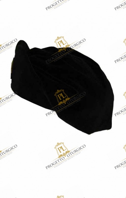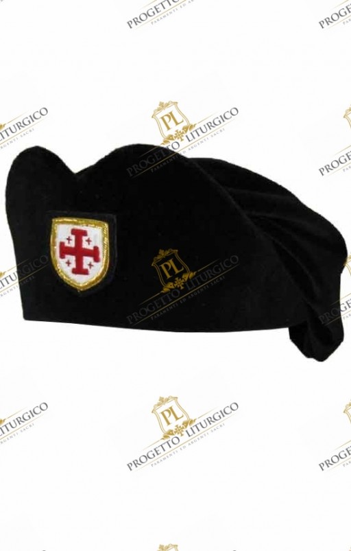 The Holy Sepulcher knight's beret is made of high quality black velvet fabric and is complete with badge of rank. It is one of the main insignia of the Equestrian Order and must be made with care in order to fit the knight's head properly.