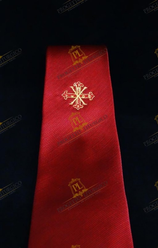 Sulla cravatta è ricamata la croce dell'Ordine.