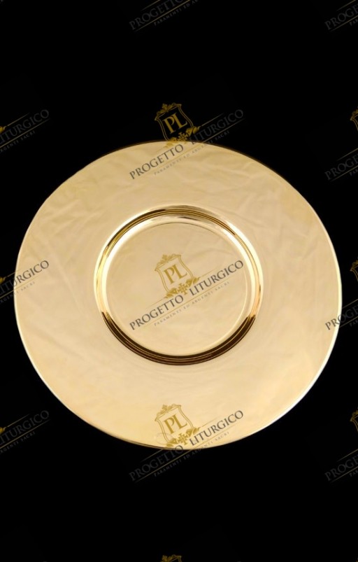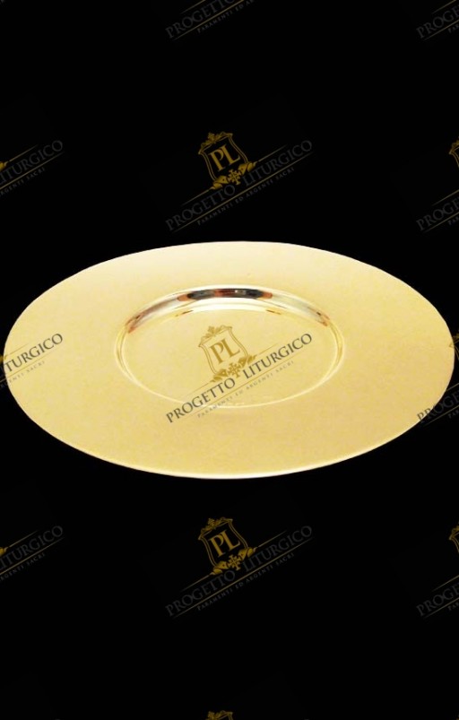 La patena in argento dorato di Progetto Liturgico è realizzata a mano, da abili maestri artigiani. Essa è realizzata interamente in argento 800 cesellato, ha un fondo ed è priva di alcuna decorazione superflua. E' resa dorata grazie al bagno in oro.