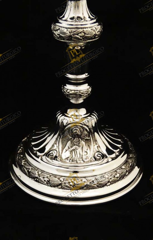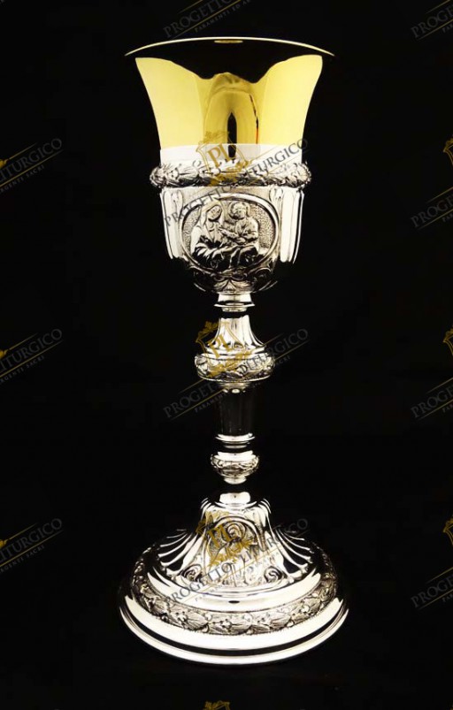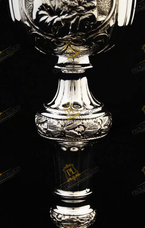 The liturgical chalice for mass has a classic, linear, clean decoration. Some ovals feature chisels with personalized motifs, such as, for example, the Lamb or the Madonna and Child.
