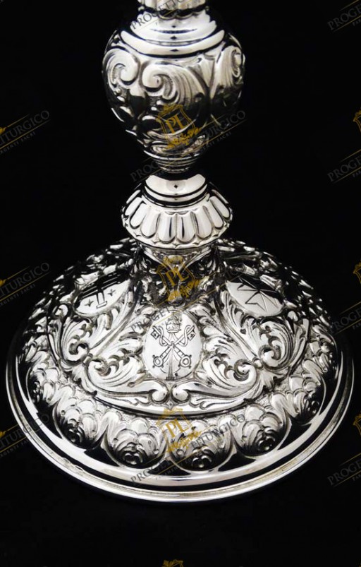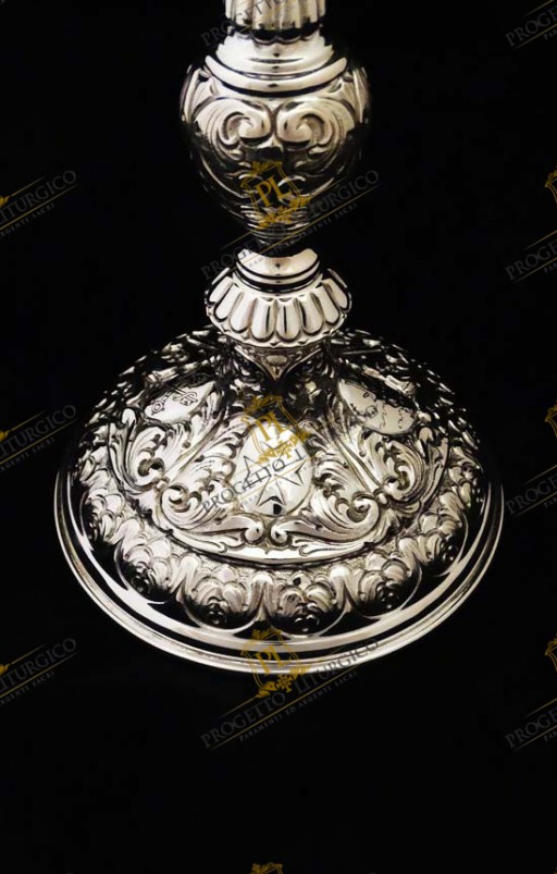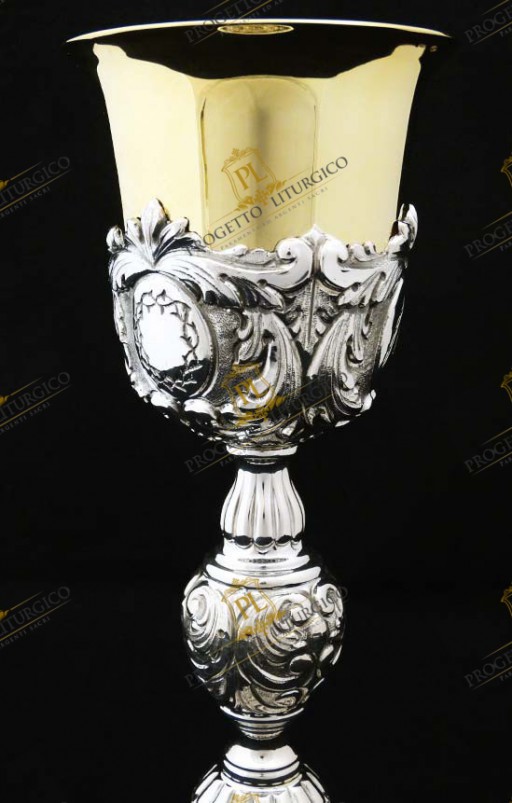 The precious baroque silver chalice that we can admire here in many of its details, is one of the numerous and wonderful chalices made with extreme dedication and professionalism in our laboratories