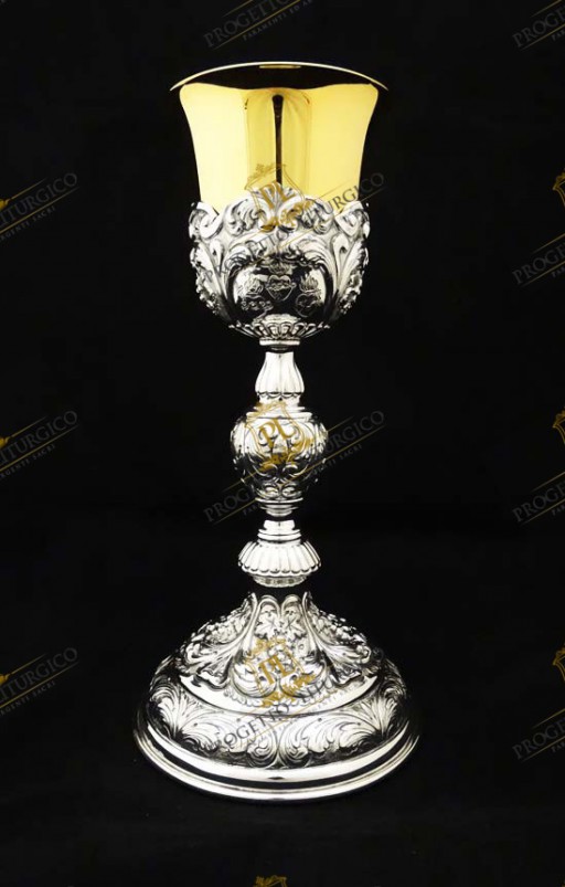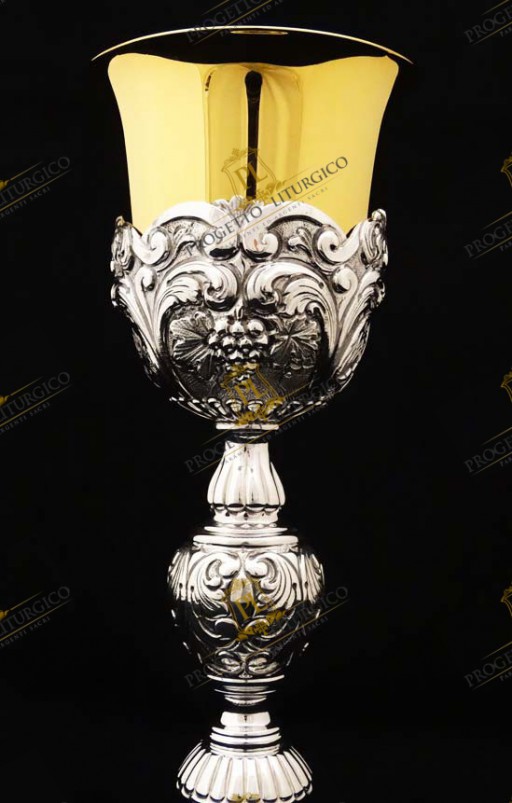 The beautiful silver liturgical chalice was made entirely by hand in the Progetto Liturgico laboratory.
