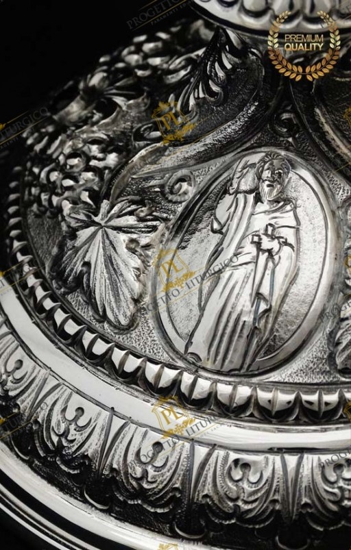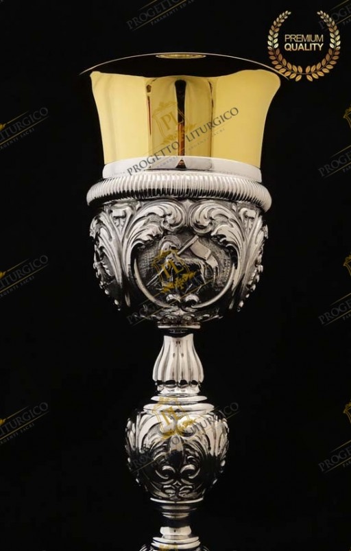 This wonderful baroque chalice of "Saints Peter and Paul" is made entirely by hand in silver.