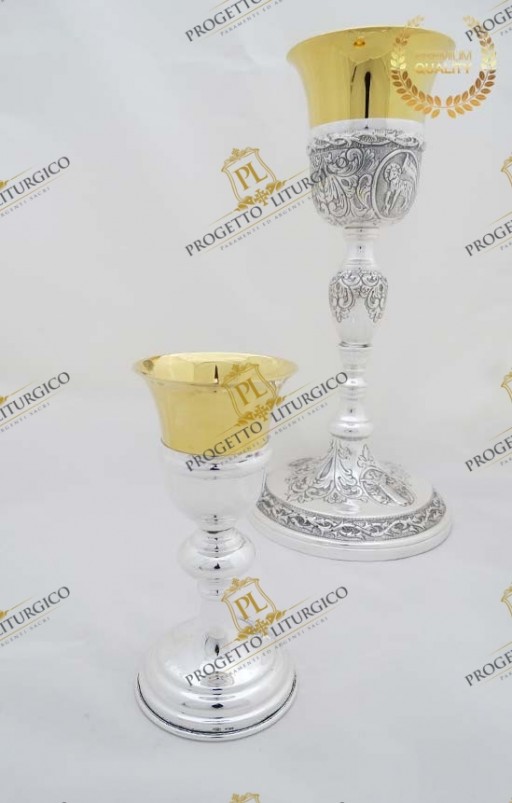 The travel liturgical chalice is made entirely of hand-chiseled silver and has a very simple, linear style.