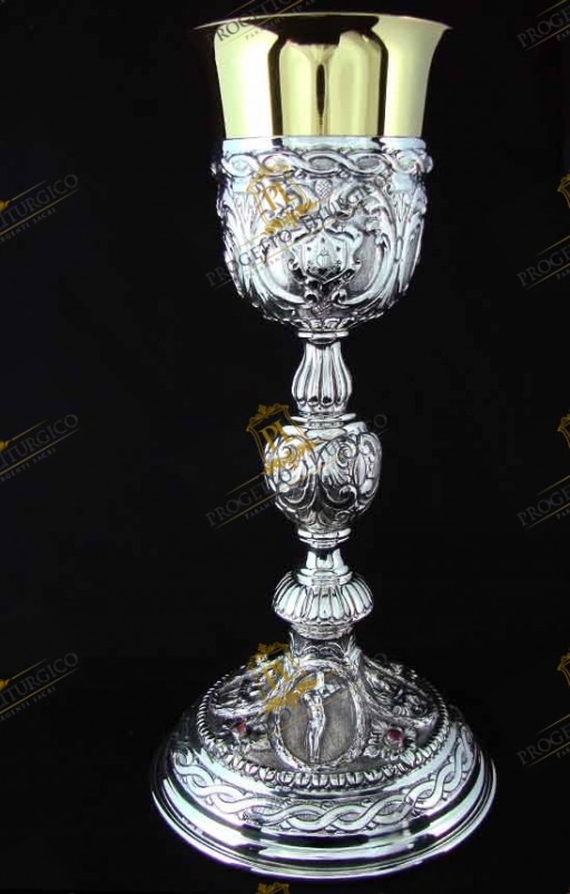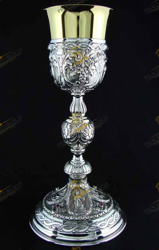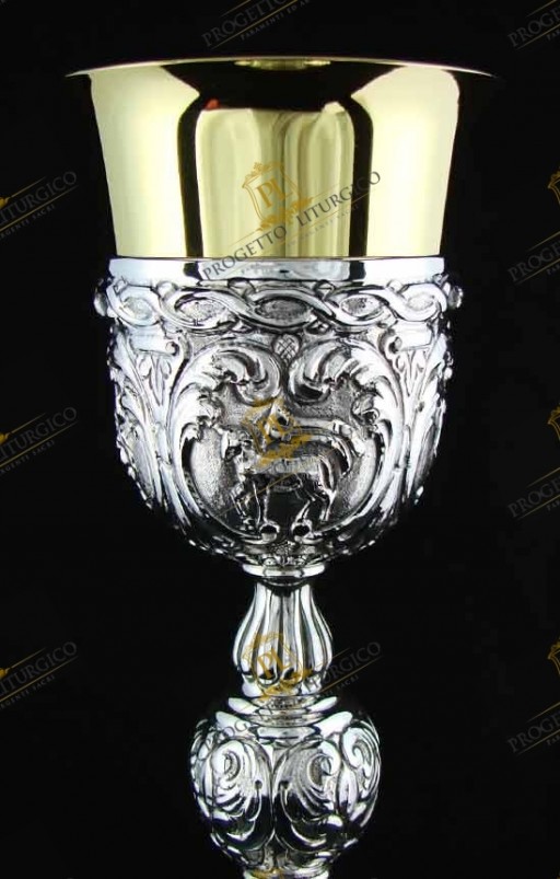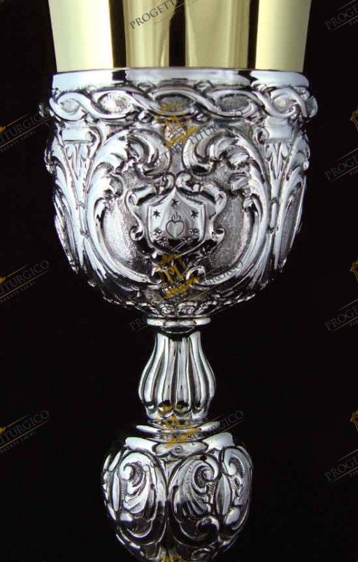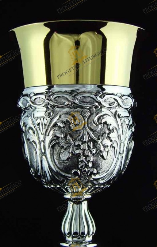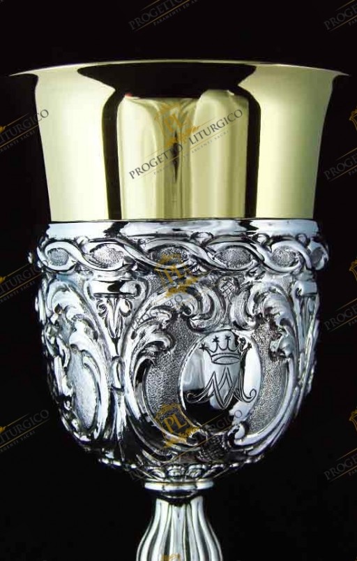Il calice barocco che qui puoi ammirare in tutti i suoi particolari è interamente in argento 925 cesellato a mano e realizzato tenendo conto delle specifiche richieste del nostro cliente.