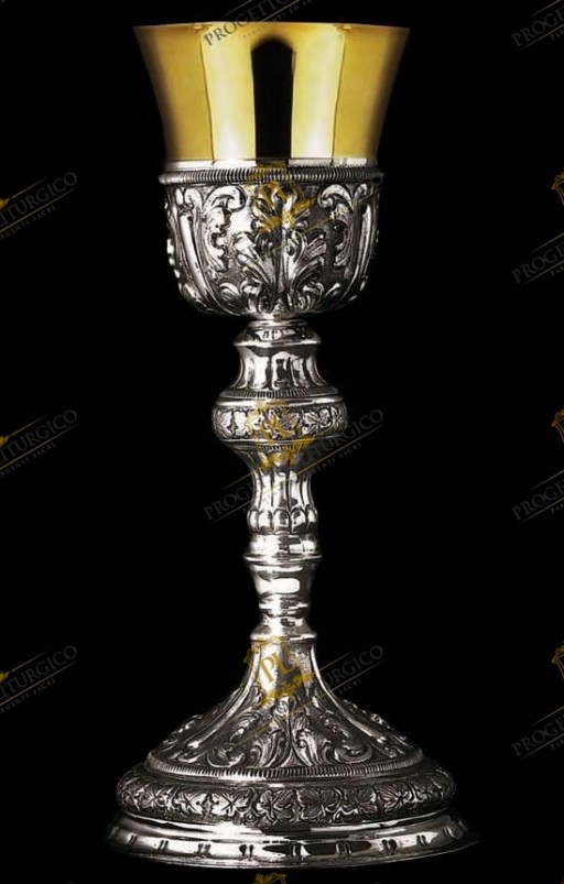 Si distingue per una decorazione ricca di elementi vegetali questo meraviglioso calice barocco in argento 800.