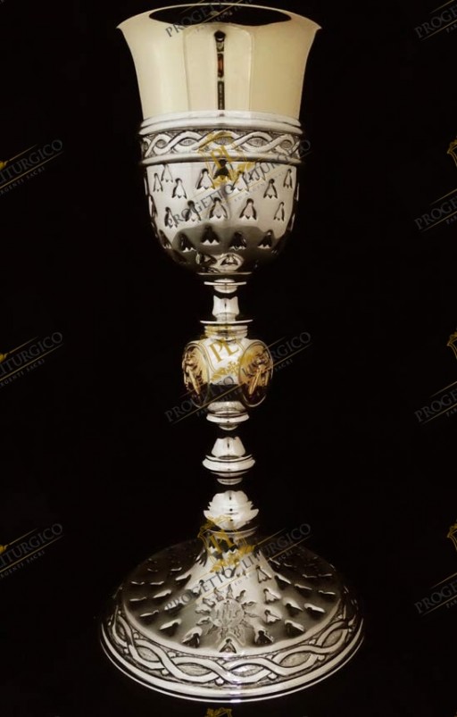 E' unico ed esclusivo questo calice in argento ispirato ai motivi di Sant'Apollinare, assolutamente impossibile trovarne uno uguale perché nato direttamente dalla fantasia del giovane sacerdote che l'ha commissionato, e realizzato in esclusiva nei nostri laboratori.
