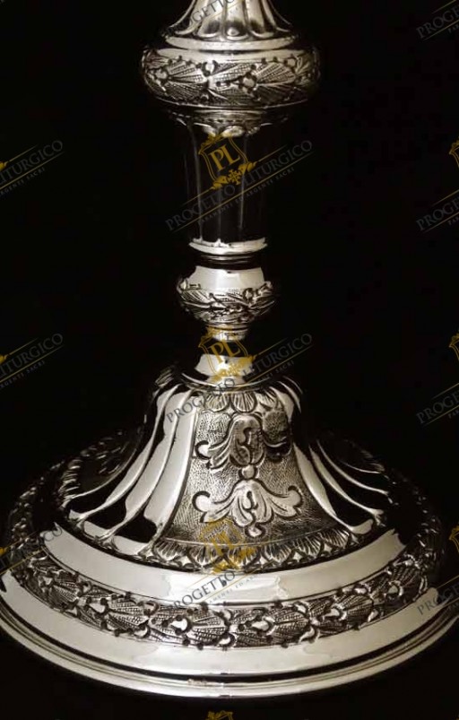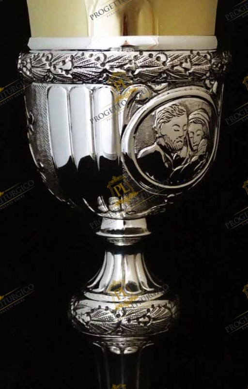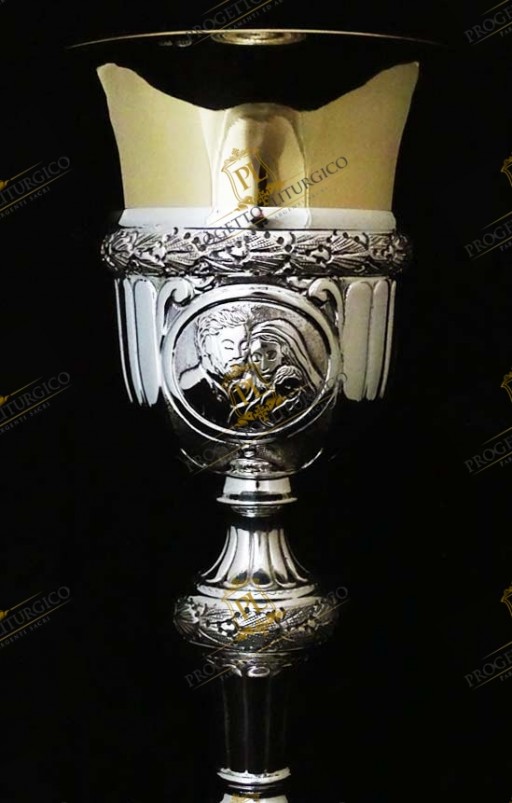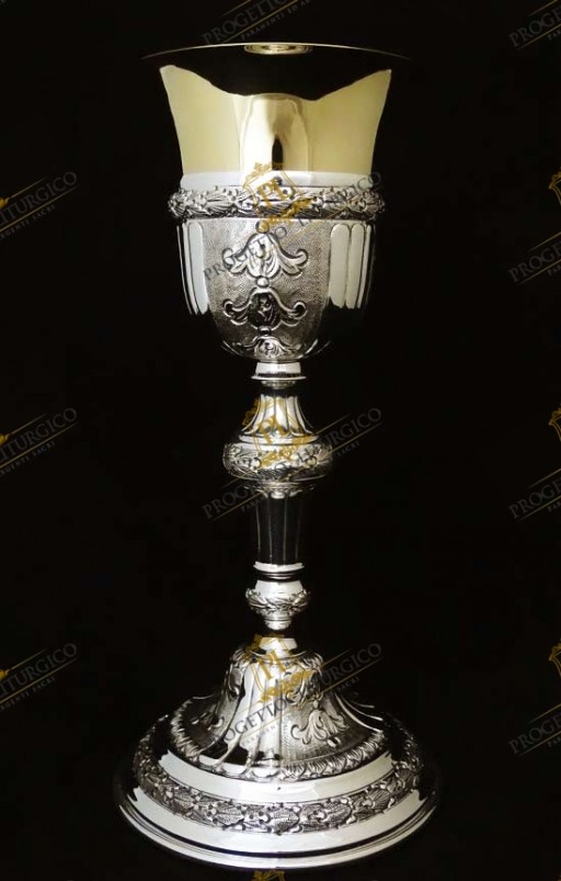 Il calice da messa che qui presentiamo è realizzato interamente in argento cesellato a mano.