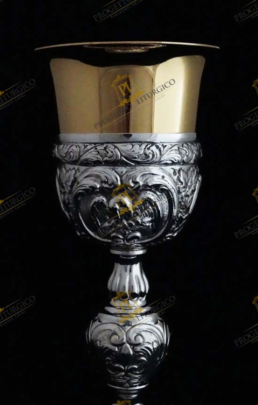 Il calice liturgico in argento PL133 è un esemplare d'arte sacra di inestimabile valore, non solo perché realizzato in argento in tutte le sue parti, ma anche perché è ricco di simbologie e personalizzazioni.