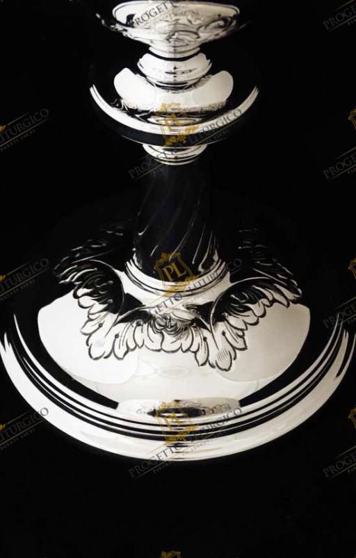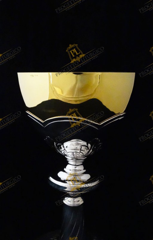 Il calice da messa semplice che qui vediamo è realizzato interamente in argento 925 ed è cesellato in stile medievale: esso è caratterizzato da una base e da una coppa più larghe rispetto ad un calice da messa in stile barocco.