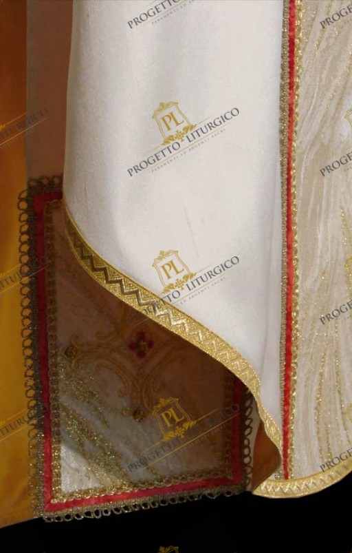 Anche il profilo della casula, infine, è rifinito con un agremano dorato.