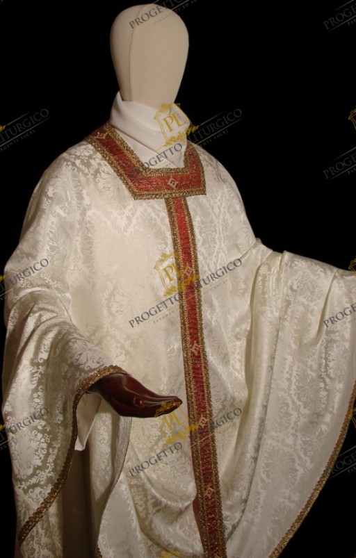 Casula bianca paleocristiana in tessuto damascato