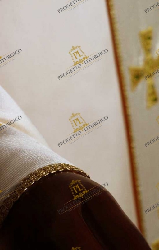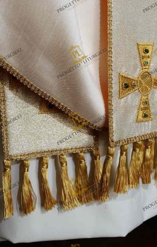 Pallio e stola sono impreziositi con fiocchi in oro mezzo fino.