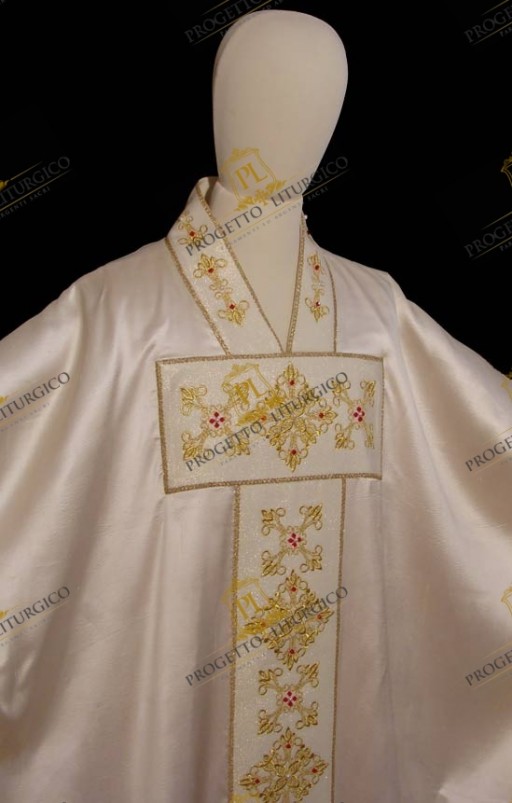 Casula bianca gotica in seta shantung