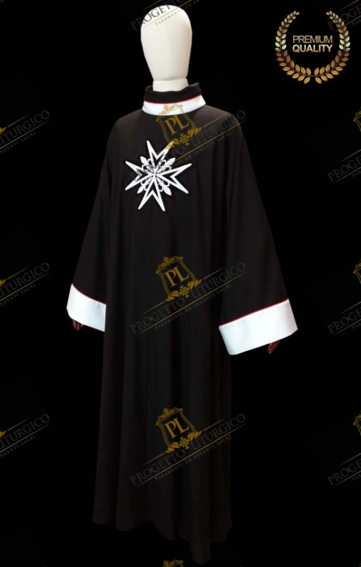 Sul petto della cocolla Onore e Devozione è collocata la croce dell'Ordine, ricamata con filato di colore bianco.