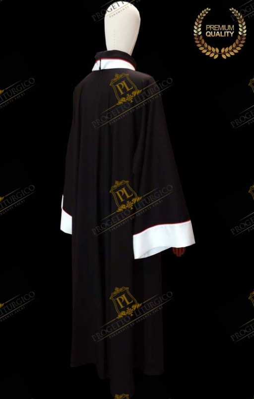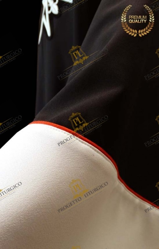 Le maniche della cocolla Onore e Devozione Malta sono molto ampie con paramano bianco filettato con un profilo rosso, lo stesso che si trova sul collo rivoltato. La cocolla presenta sui fianchi delle comode aperture per le tasche.